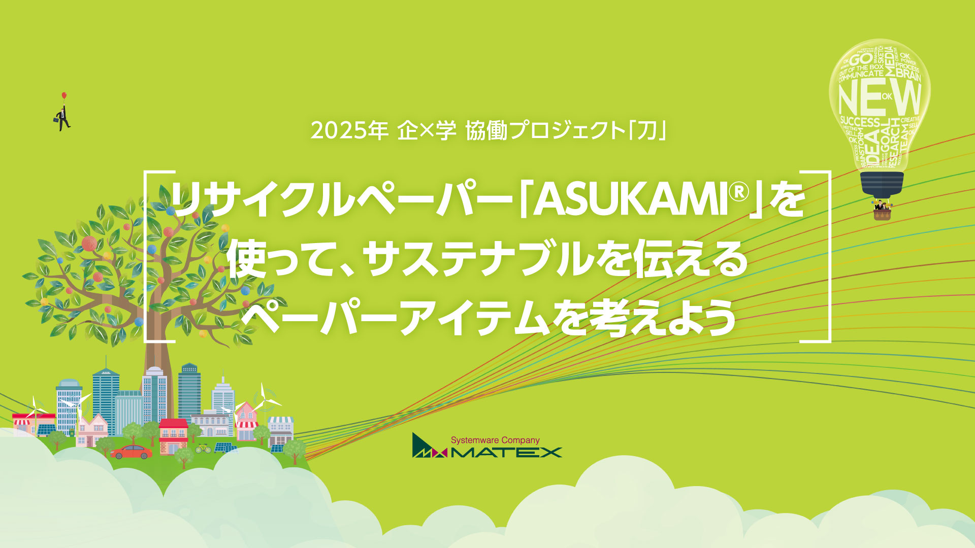 マテックスは、2チームとマッチングし、「リサイクルペーパー「ASUKAMI®」を使って、サステナブルを伝えるペーパーアイテムを考えよう」という課題を考えてもらいました。